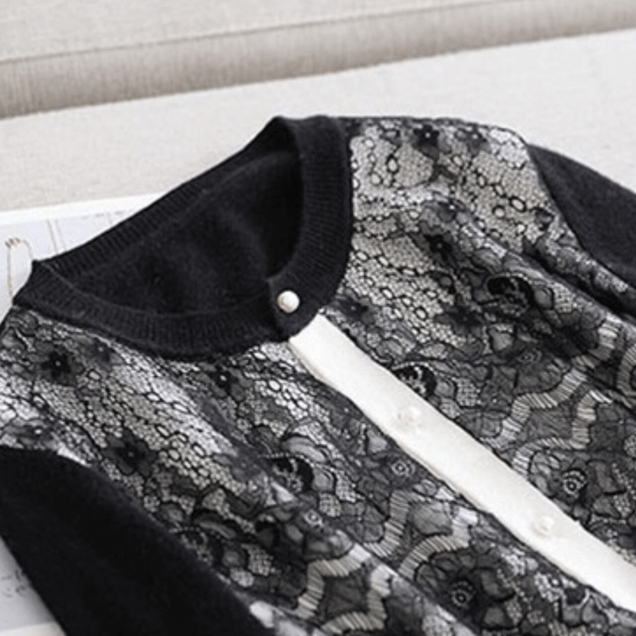 フロントレースが特徴のフェミニンなカーディガン。