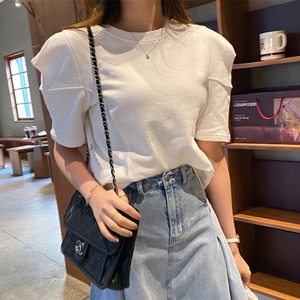 シンプルなデザインながらも、肩のシルエットが効いた洗練された雰囲気が、着る人の個性を引き立てます。