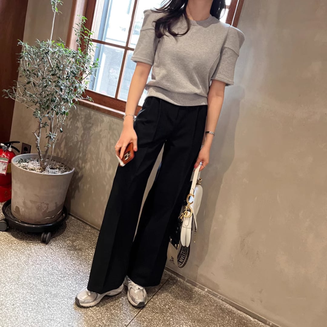 洗練されたミニマルデザインと計算された肩のフォルムが、着る人の佇まいを一瞬で格上げする、今季マストバイのトップス。