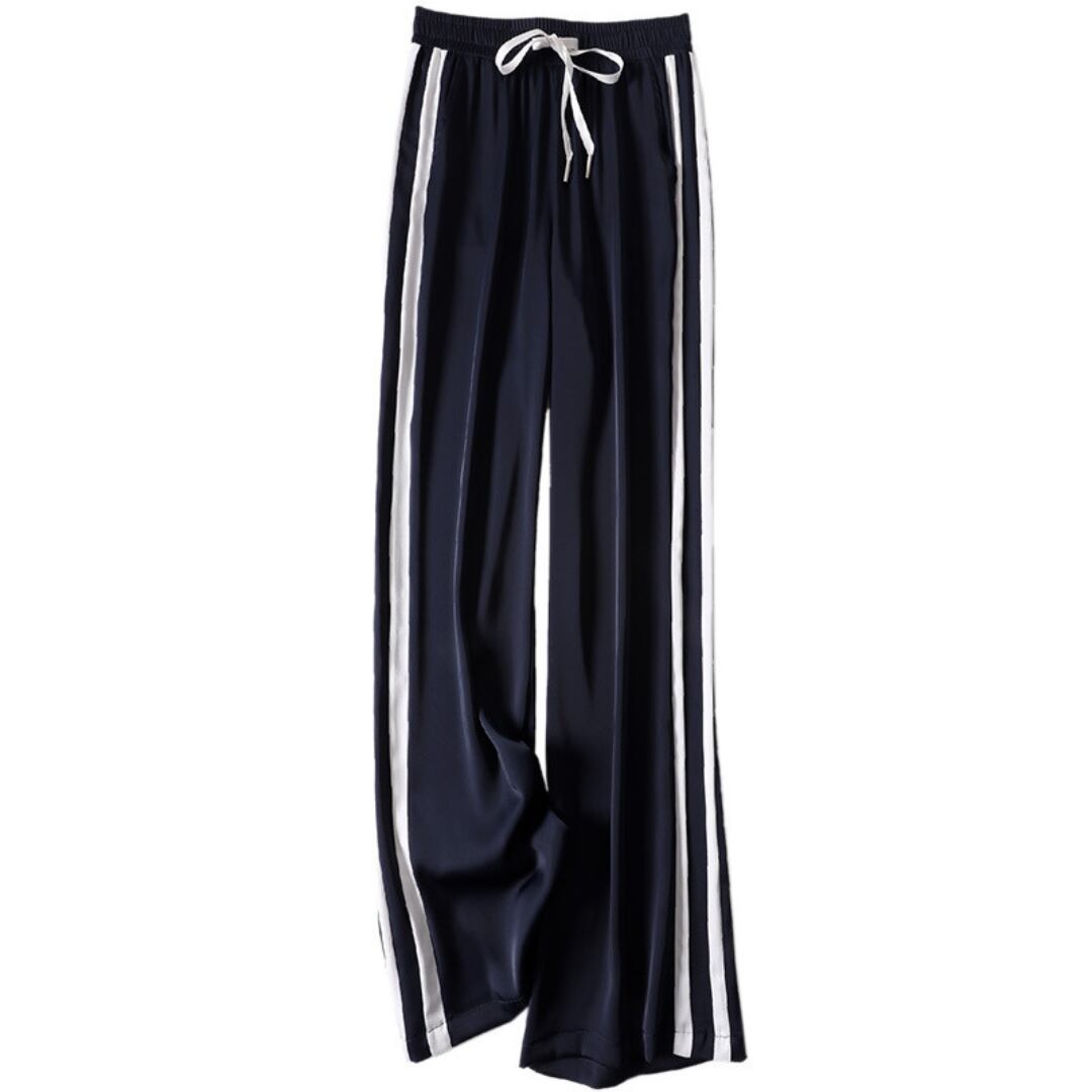 快適さとスタイルアップを両立させたサイドライン サテンパンツ。
