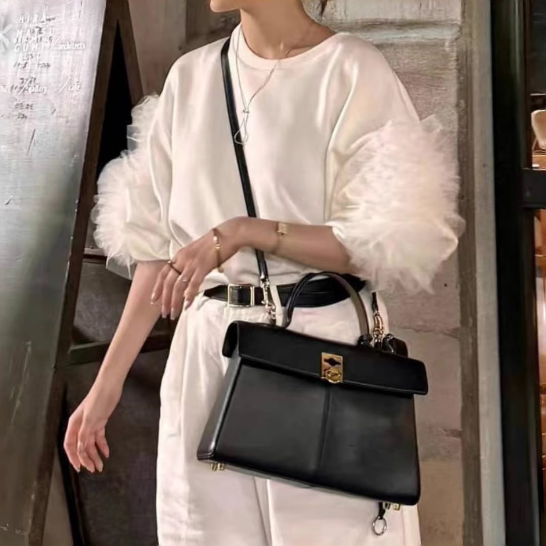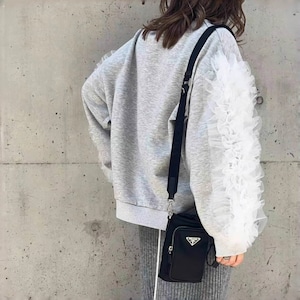 たっぷりなチュールフリルが目を引くゆるっと大人可愛いプルオーバー