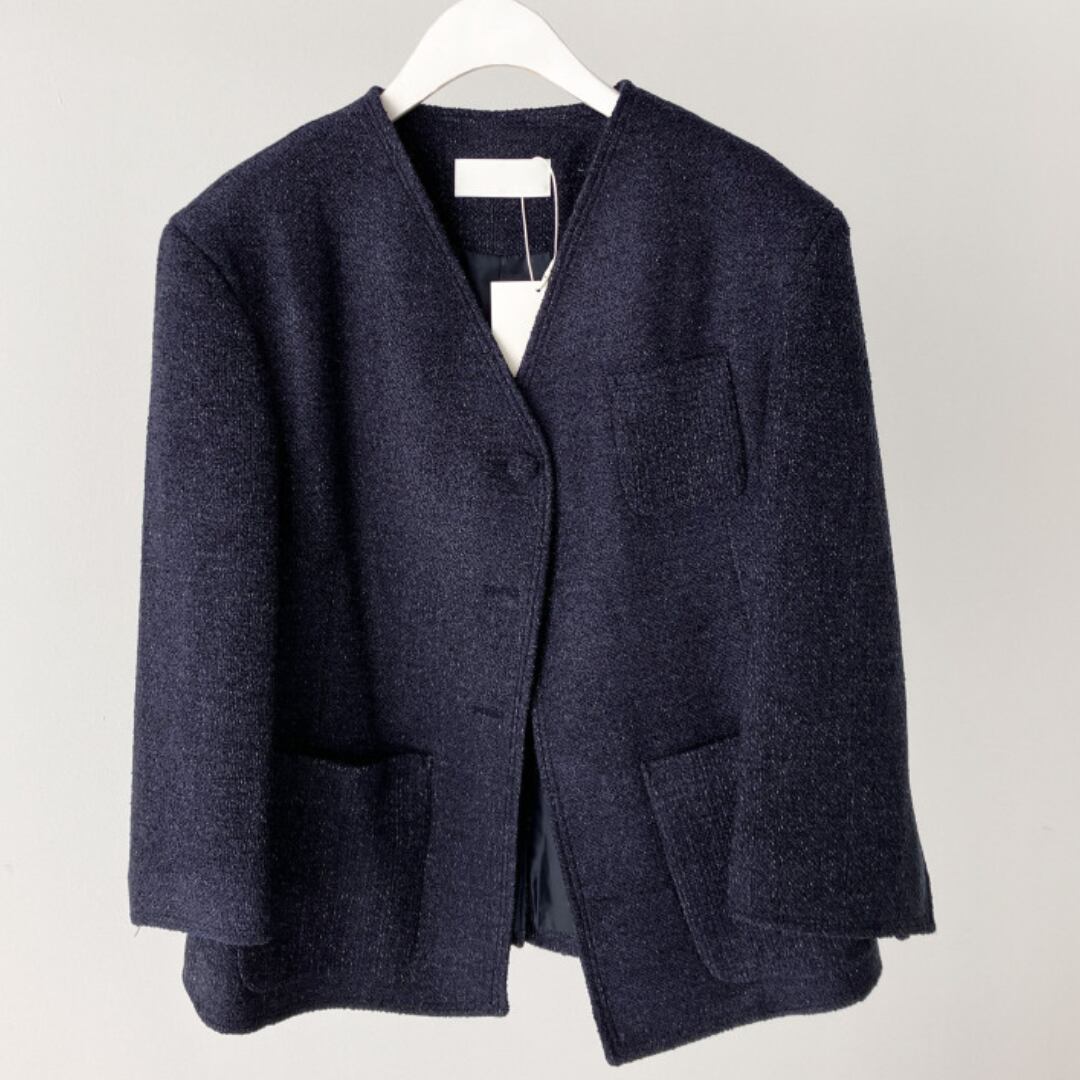上質なツイード素材を使用し、フォーマルからカジュアルな日常まで幅広くコーディネートできる1着です。