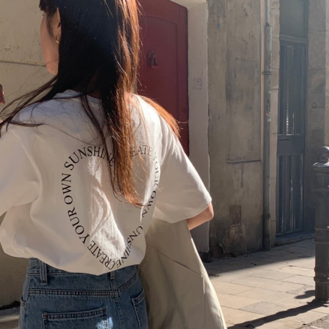 バックに施されたハートのロゴが、可愛らしいバックプリントTシャツ。