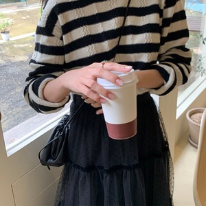 ドット柄が可愛らしさを引き立てるティアードロングスカート。