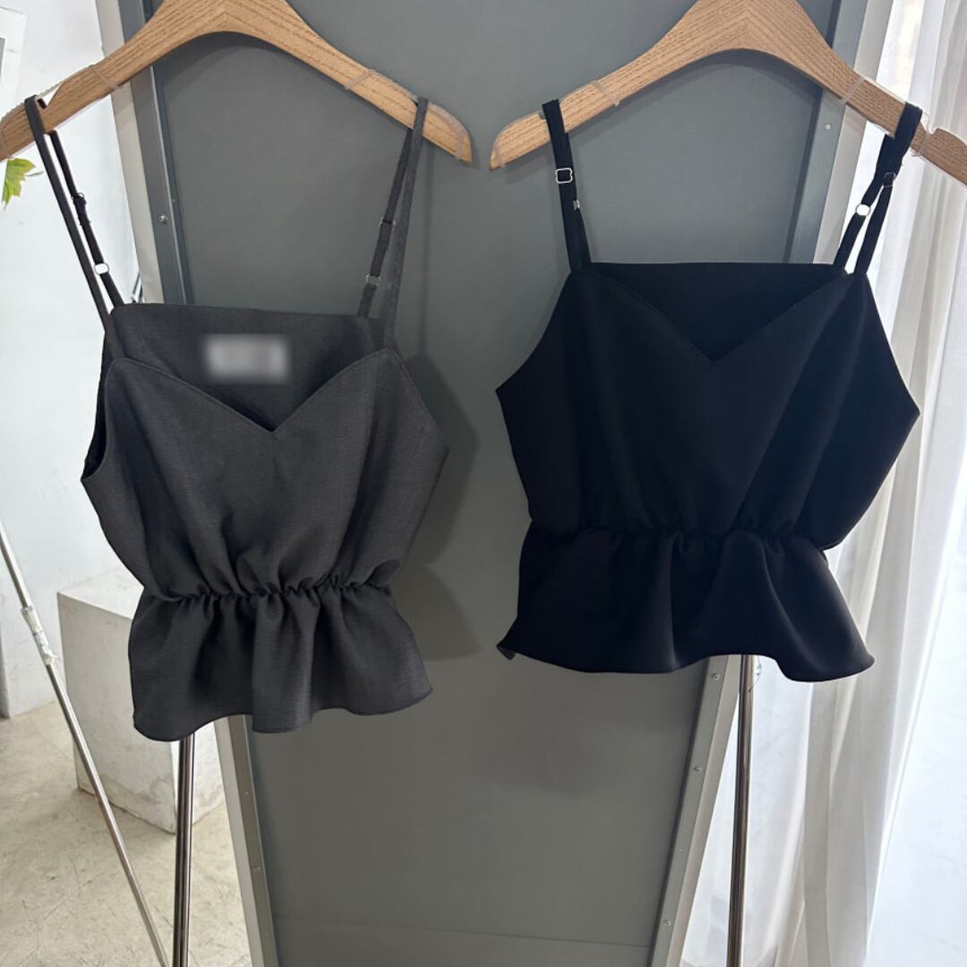 大人可愛いリラクシーなペプラムキャミソールとイージーワイドパンツのセットアップ。