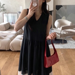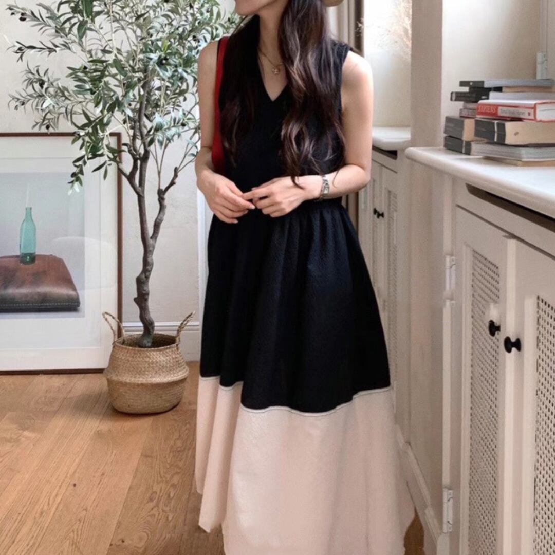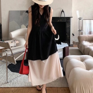 バイカラー ノースリーブ ワンピース 2color/3412614
