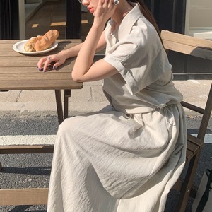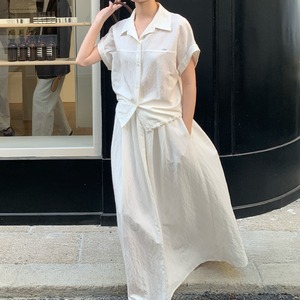 大人のリラックス感溢れるシャツとスカートのセットアップ。