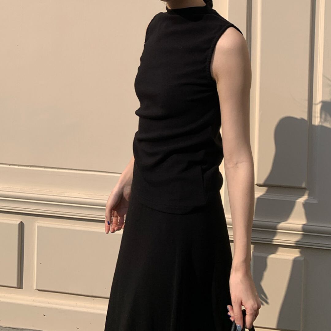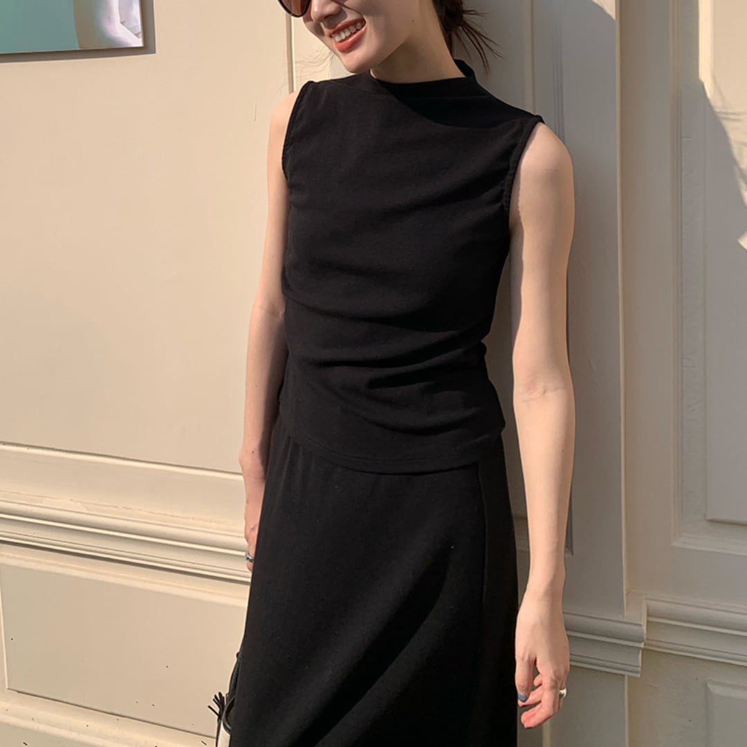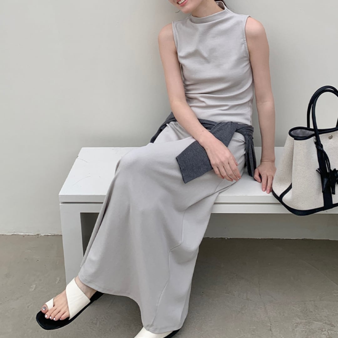 ボトルネック ノースリーブ スカート セットアップ 3color/3412619