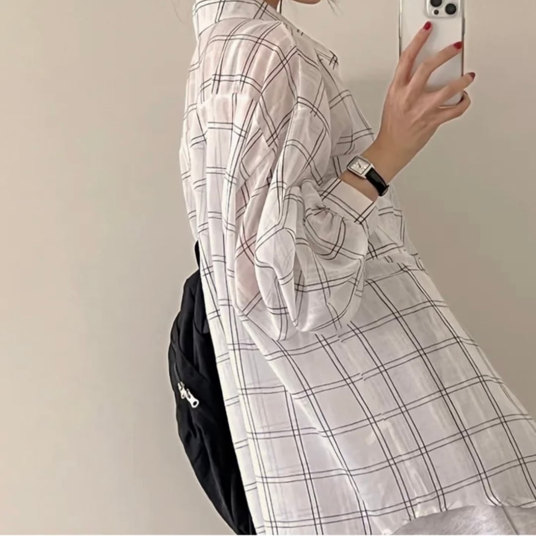 儚げな透け感が魅せる シースルー チェック ルーズシャツ