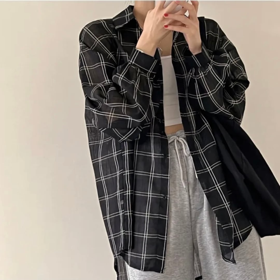 シースルー チェック ルーズ フィットシャツ 2color/3412660