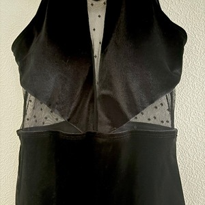 背中部分には透け感のあるメッシュ素材を使用し、セクシーさと上品さを絶妙にバランスさせたデザインで、深めのバックオープンが後ろ姿も美しく見せてくれます。