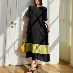 黒×イエローの大胆な配色と、都会的な洗練を纏わせプリーツの動きが生む立体感で、歩くたびに表情を変える上質なワンピース。