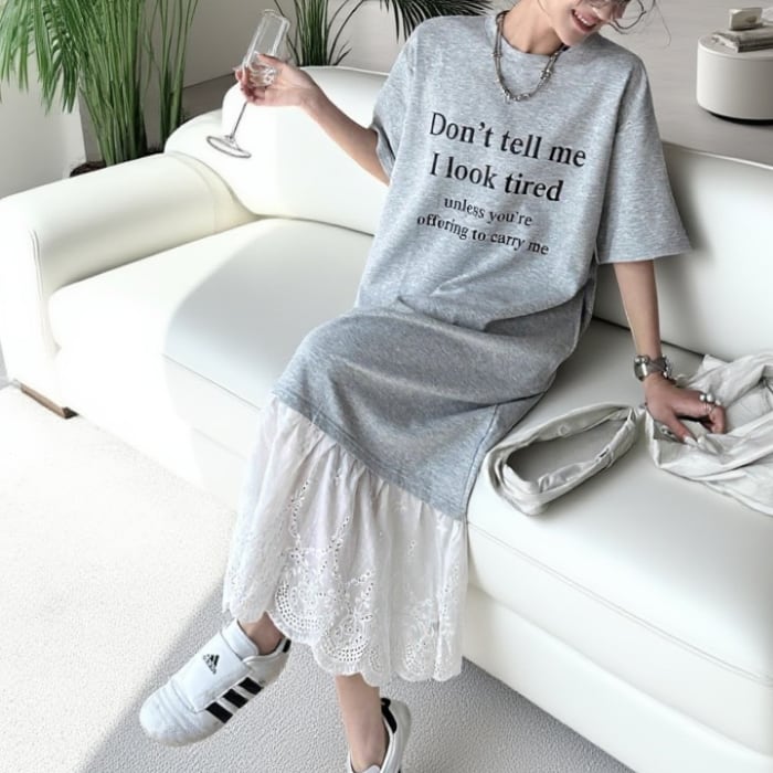 レース ヘム Tシャツ ロング ワンピース 3412760