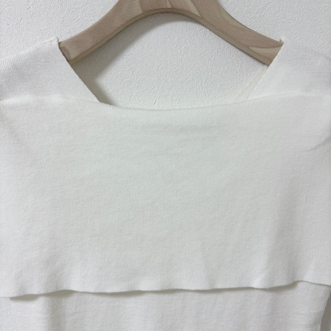 肩の美しいラインを引き立てるオフショルダーデザインに、ケープ風のショートスリーブが特徴的で、二の腕をさりげなくカバーしながら女性らしい華奢さを演出し、シンプルながらも存在感のあるスタイリングを叶えます。
