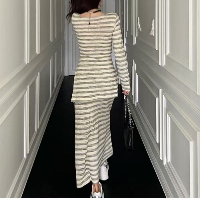 ウエストマークで美しいくびれを演出、ロング丈で気になる下半身もカバー。