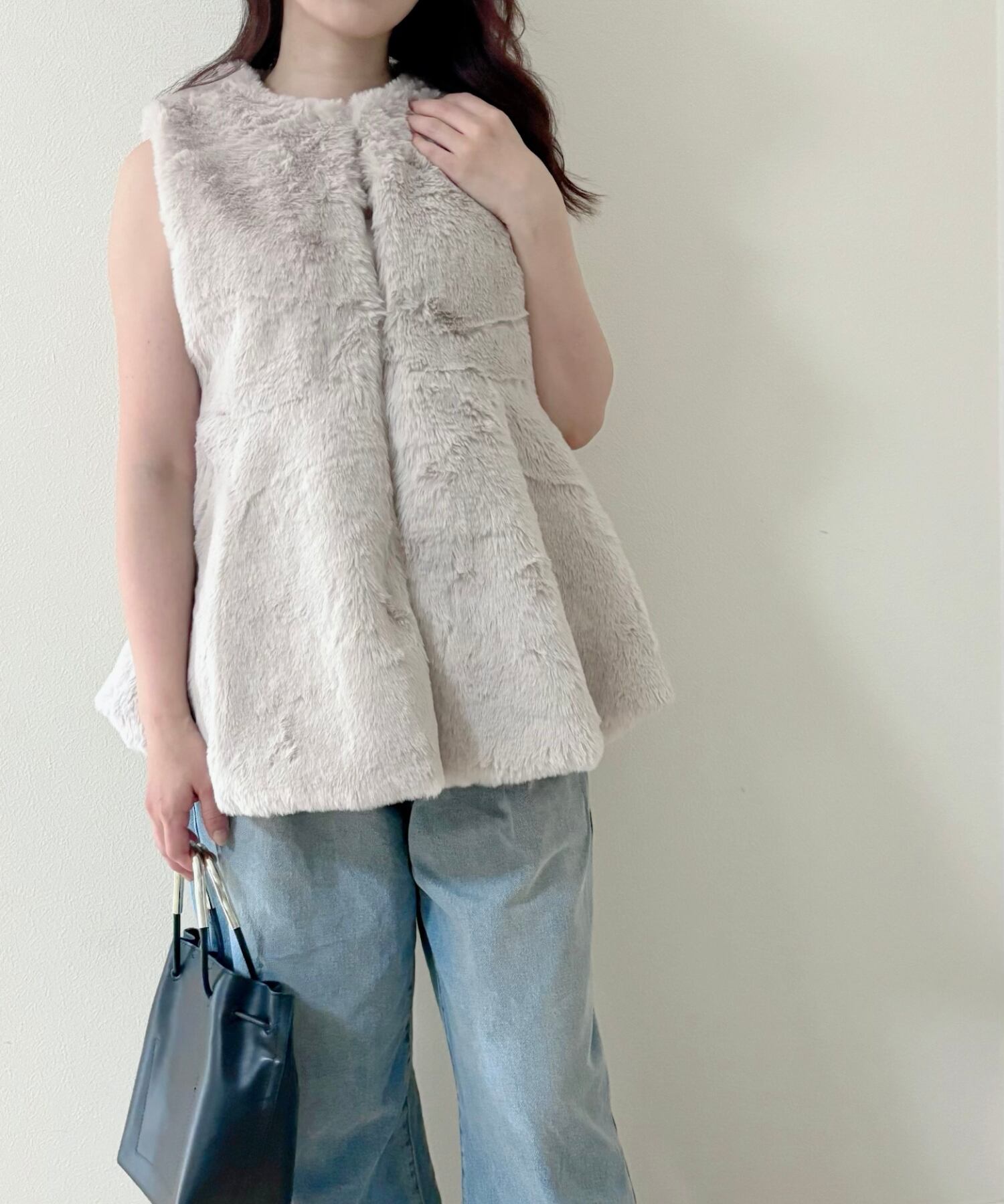 腰回りやヒップラインをさりげなくカバーしてくれる、ママの味方のファーベスト。
