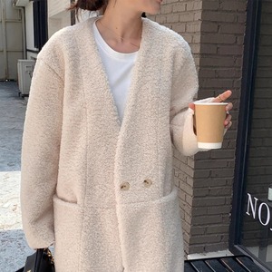 ノーカラー ボア ロングコート 3412882