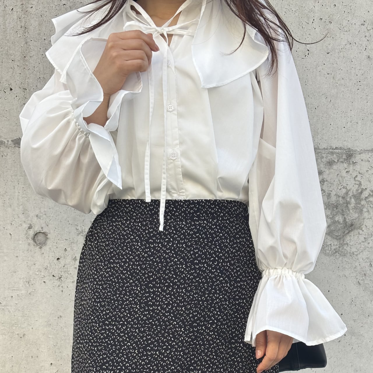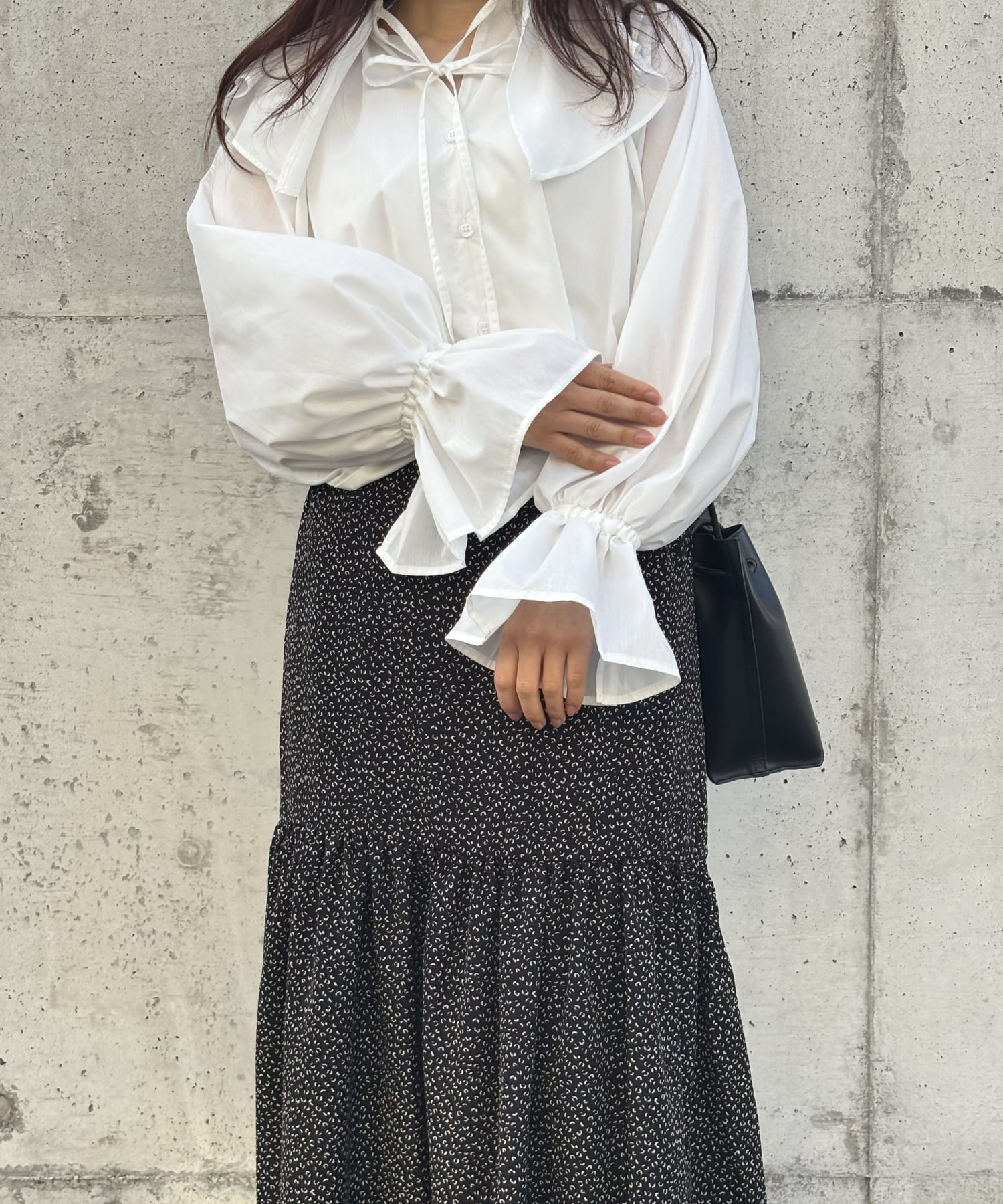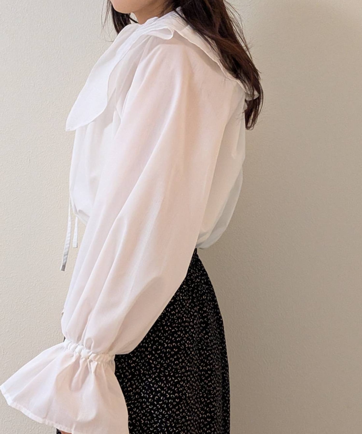 ふんわりと広がるバルーンスリーブが女性らしいシルエットを作り、華やかな印象に。