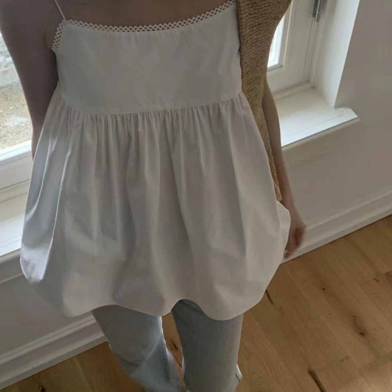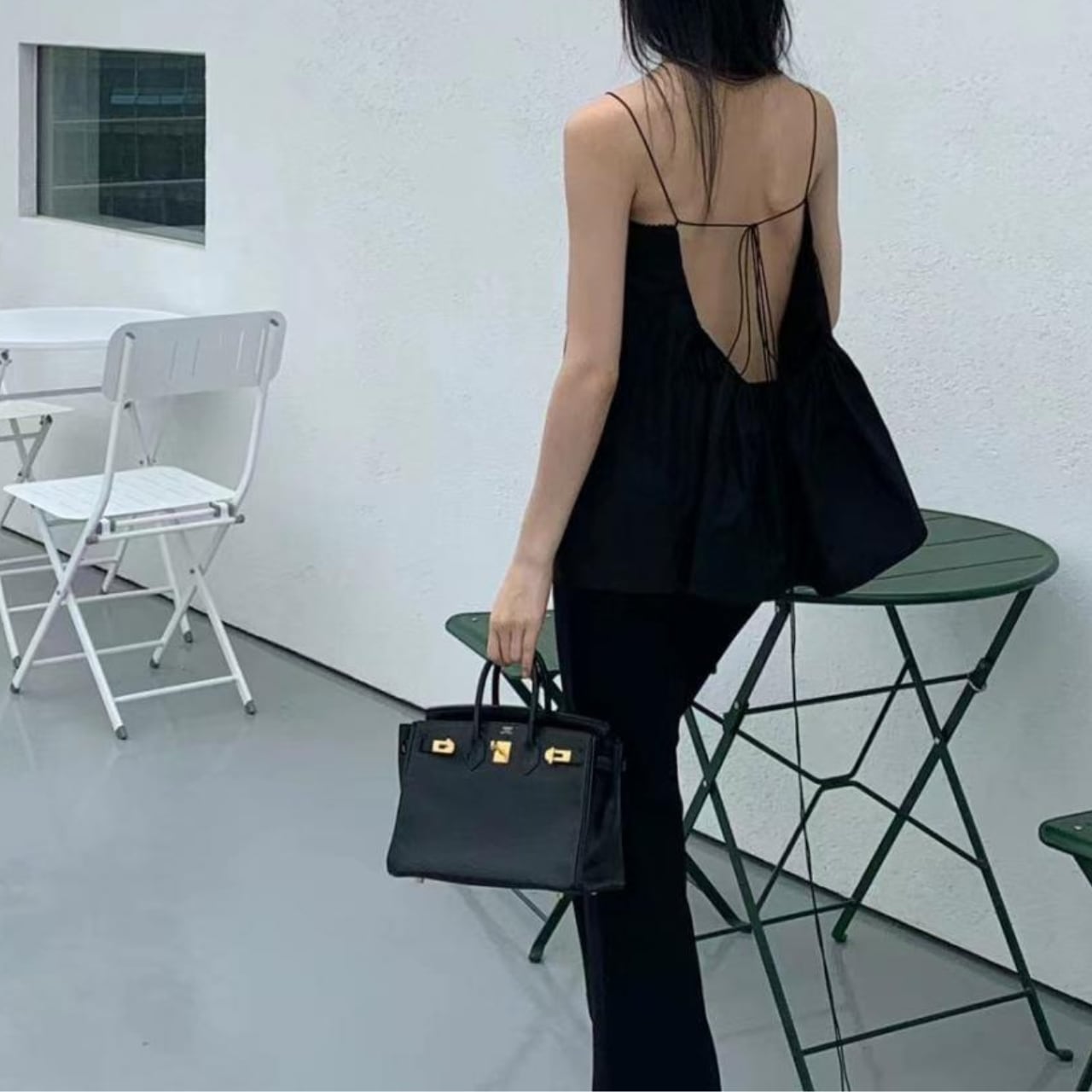一見シンプルなキャミソールが、振り返った瞬間に全てが変わる。