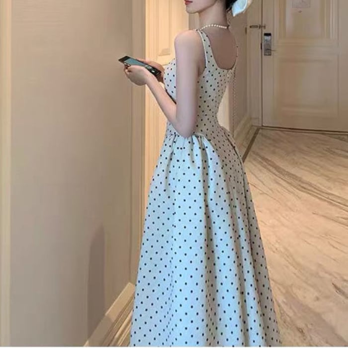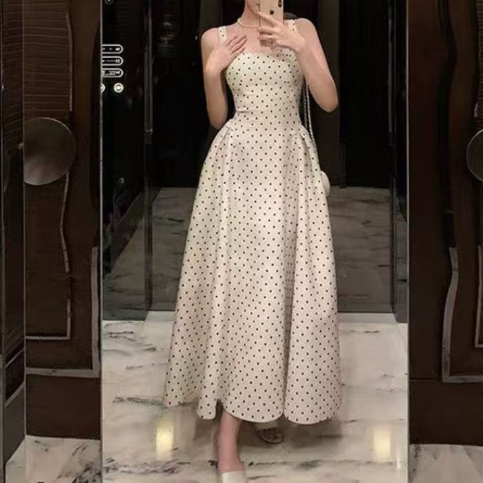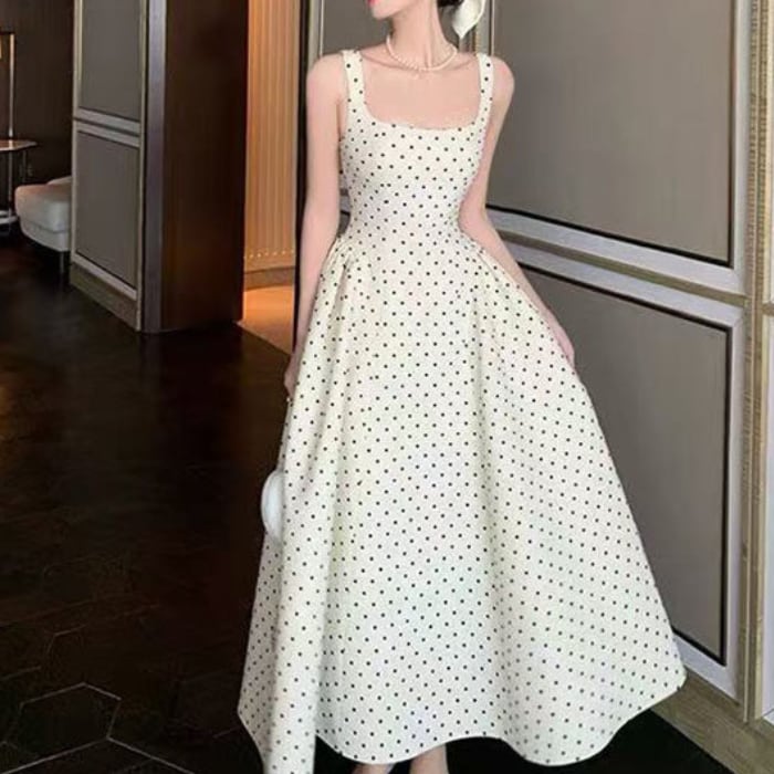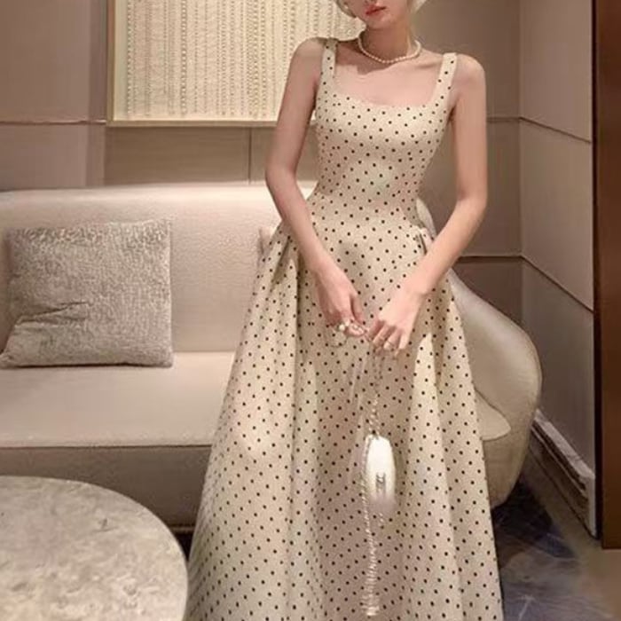 ドット柄 スクエアネック Aラインロングワンピース 3412916