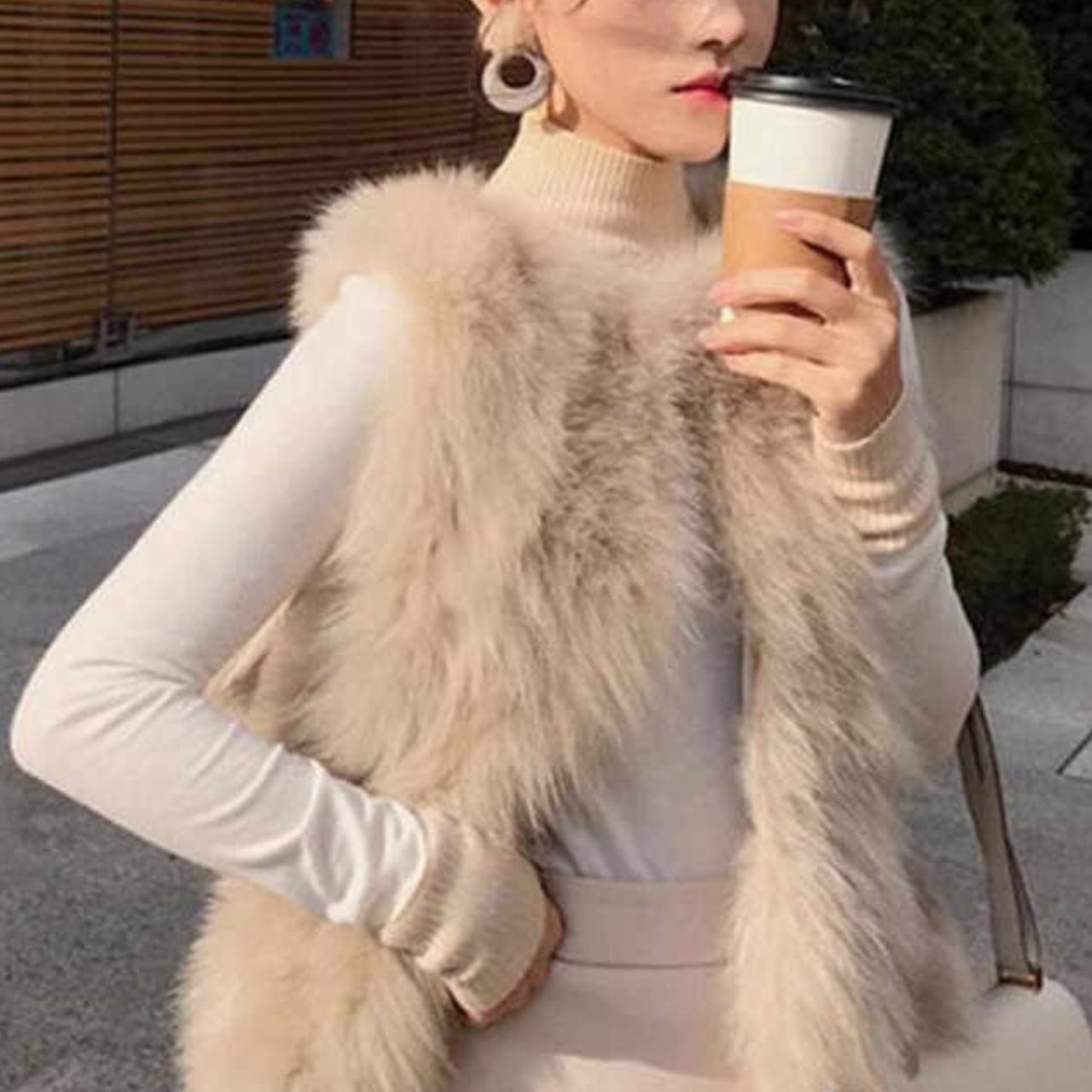 贅沢に仕立てられたフェイクファーベストは、ラグジュアリーな雰囲気を纏った女性のためのファッションアイテムです。