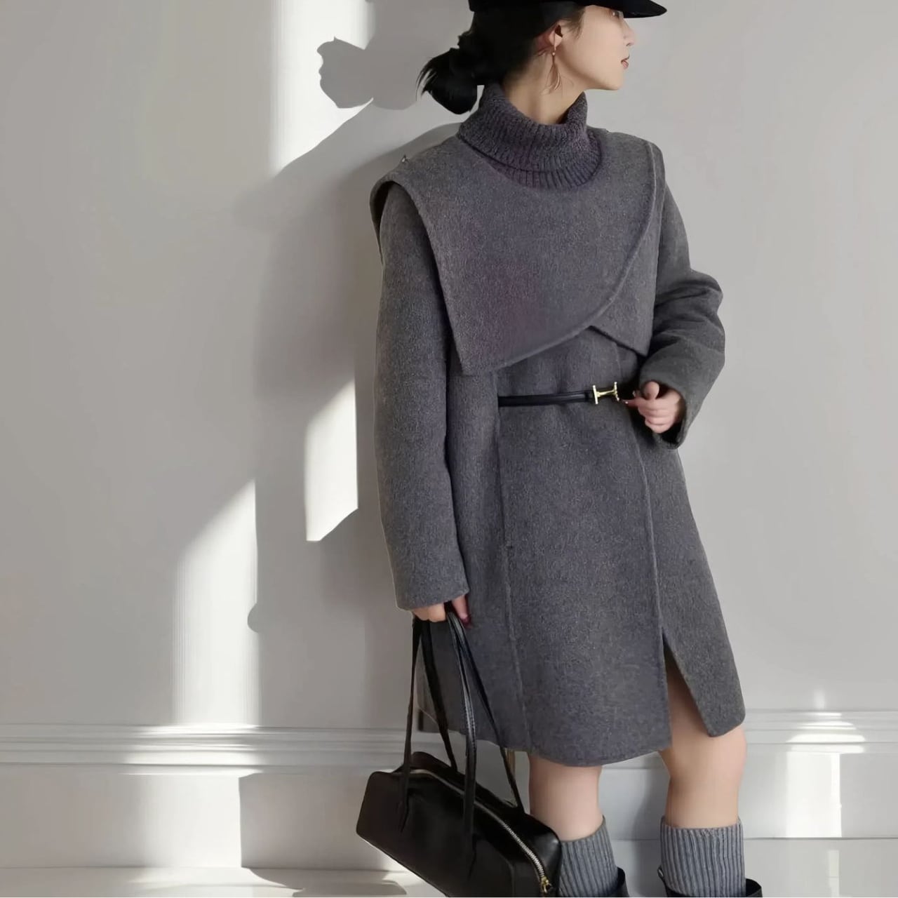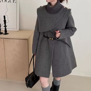 ショール ケープ ベルト付き ミドル丈 コート 20241108