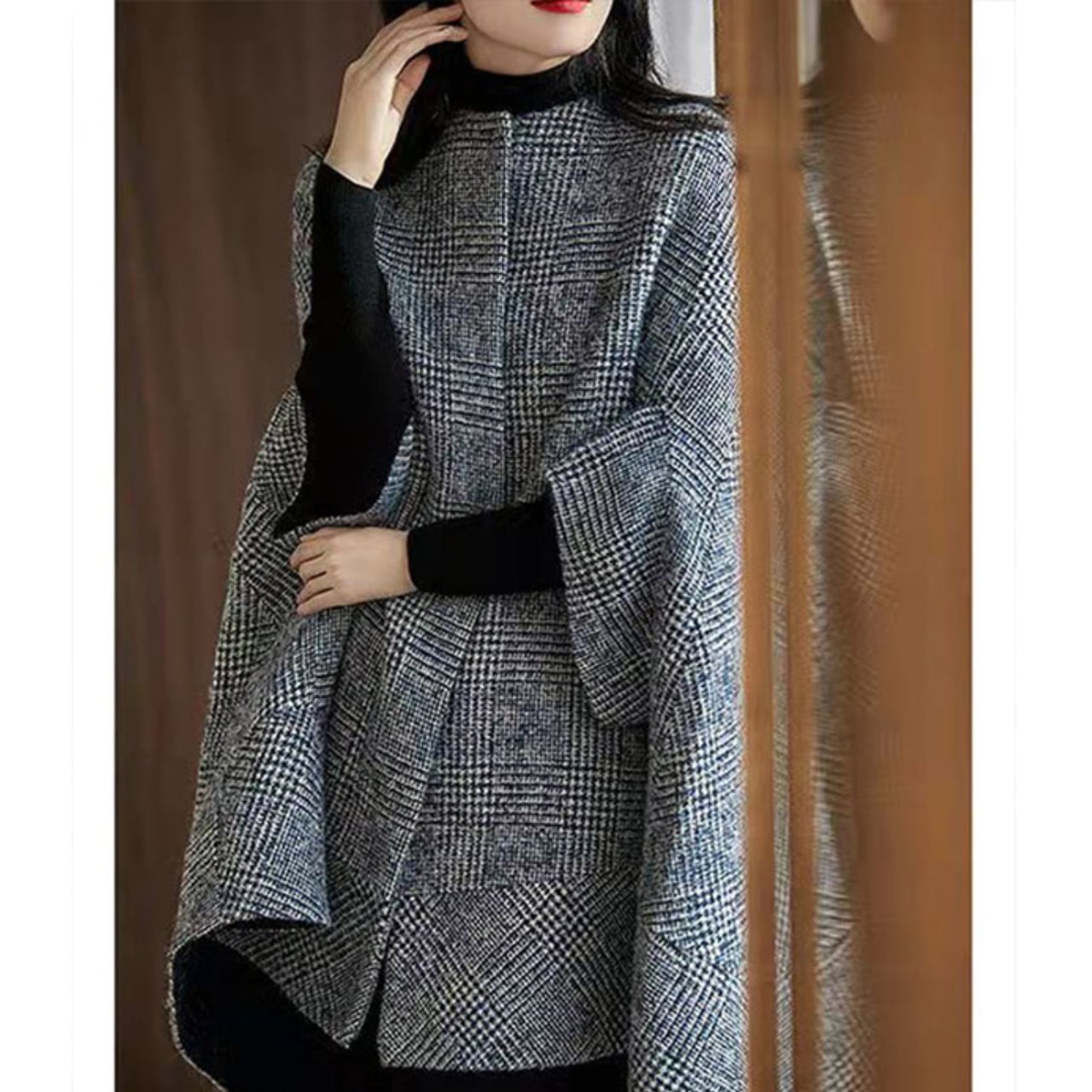 オシャレで存在感抜群のチェック ポンチョ ケープ コート!