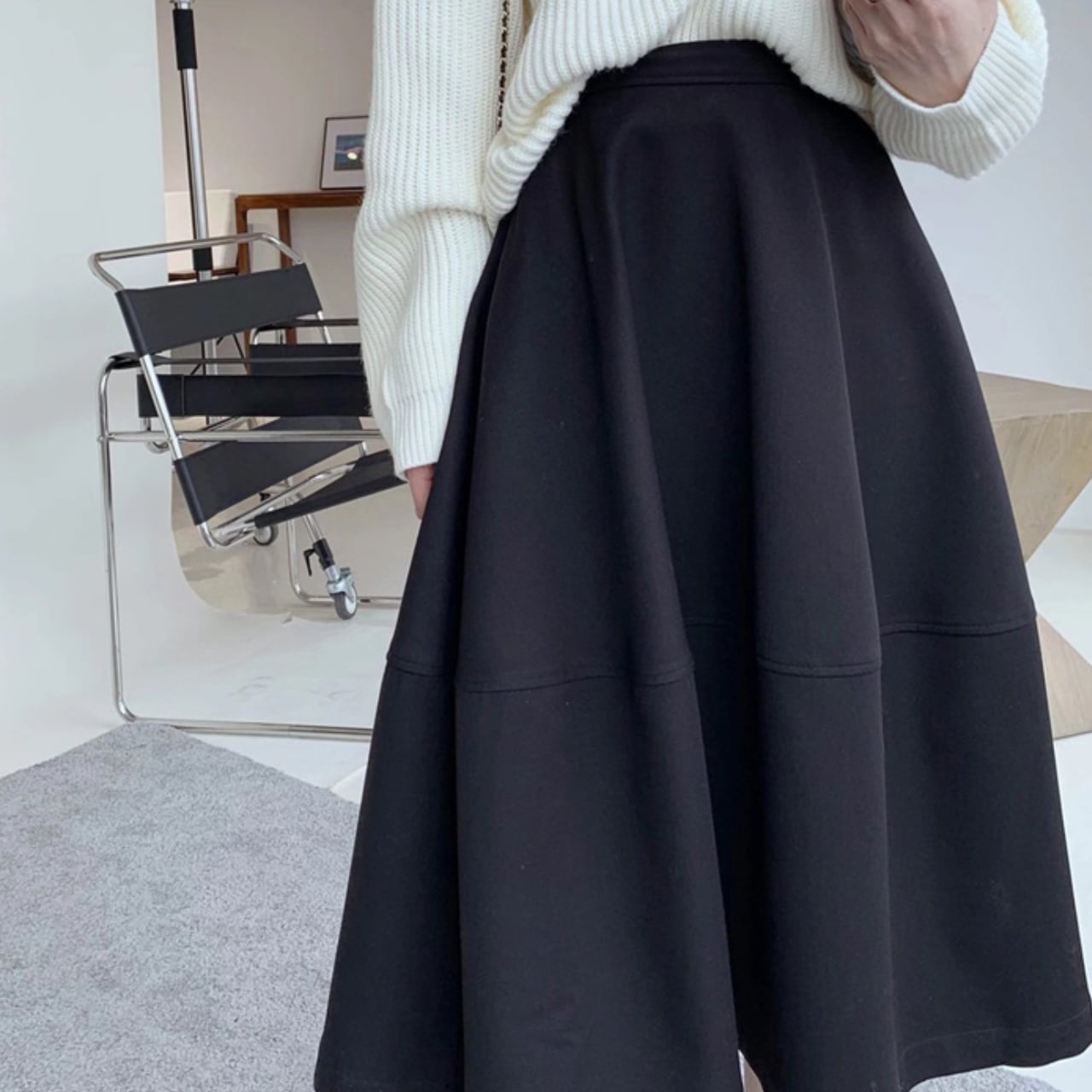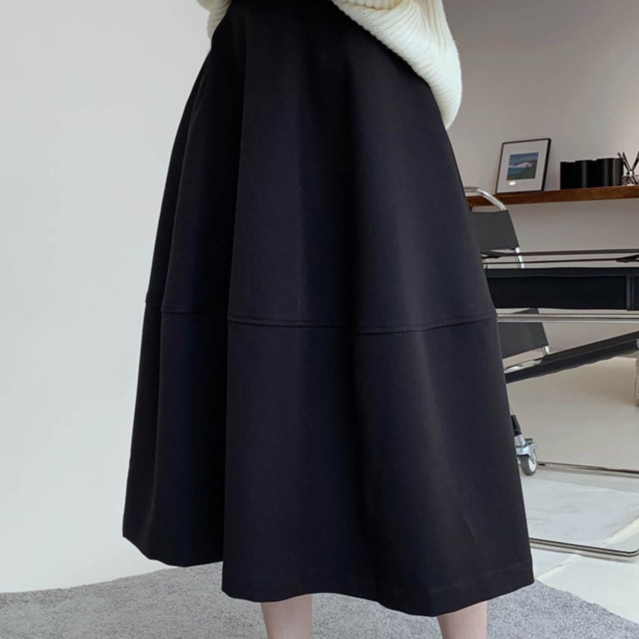 ボリューム感あふれるアンブレラミドル丈スカート
