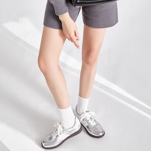 スタイリッシュなメタリックシルバーが足元を華やかにし、コーディネートのポイントに◎