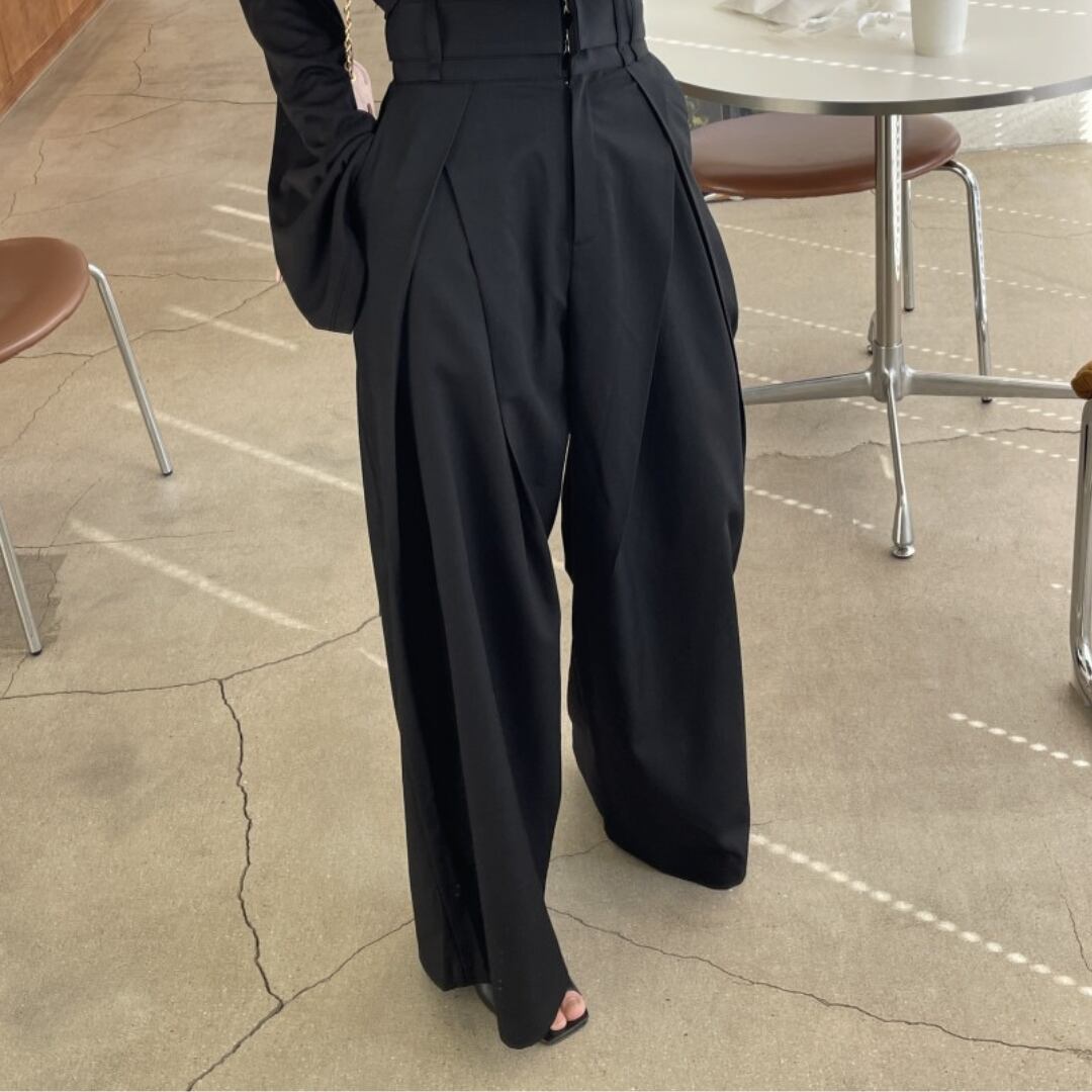 軽やかなハイウエストデザインが、スタイルを美しく見せるタックパンツです。