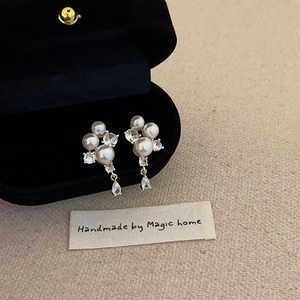 エレガントなパールとストーンを組み合わせた、上品さあふれるピアスです。