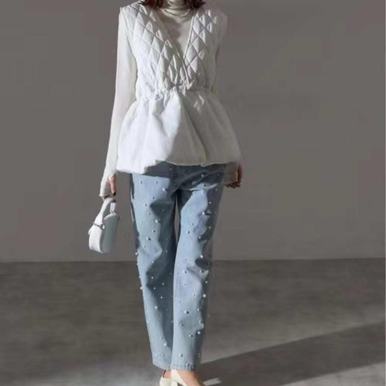 ふんわり広がる裾デザインが大人可愛いシルエットのキルティングベストです。