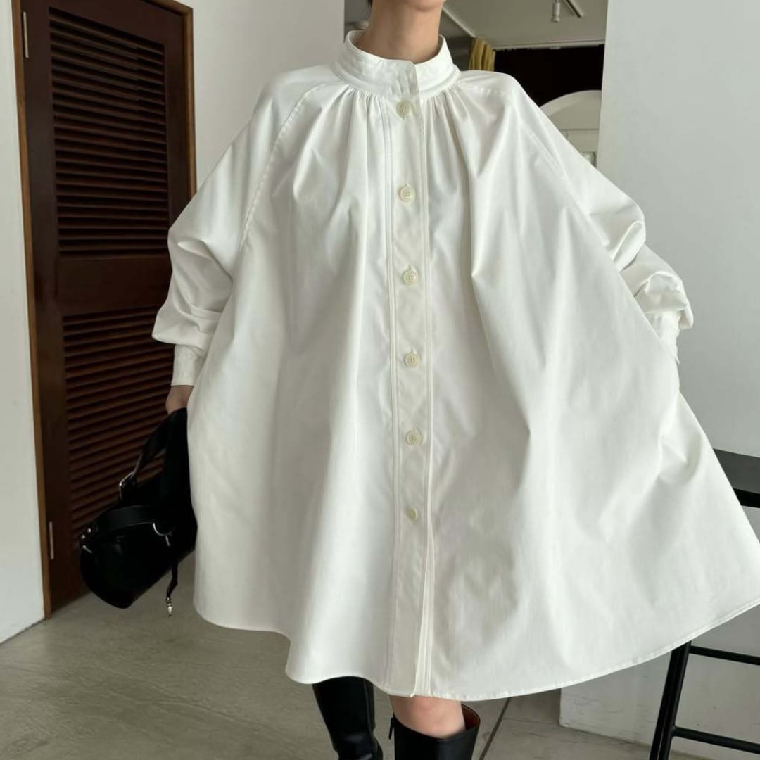 ゆったりとしたシルエットが体型を気にせず、快適な着心地とオシャレを楽しめる一着です。