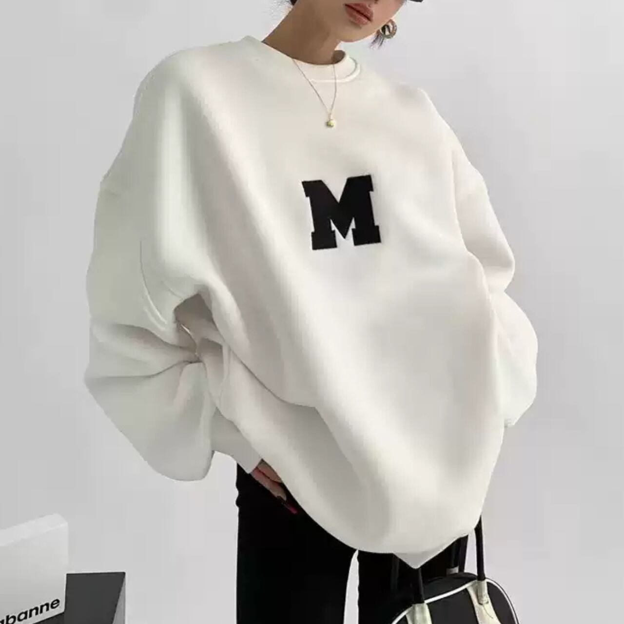 Mのロゴが可愛いトレンド感のあるオーバーサイズのスウェット。